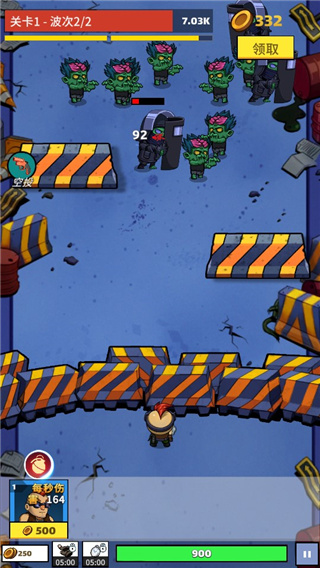 1、作为挂机游戏非常合格,不过在我看来,点击开火的时候非常爽,疯狂的点击屏幕,看着丧尸被我打的支离破碎。感觉算是游戏中最大的一个特点。