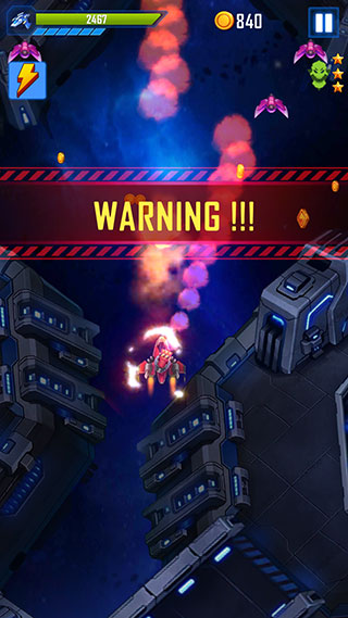 1、触摸屏幕并移动以避免敌人的攻击,射击并摧毁它们。2、单击以根据每种类型的敌人更改飞船。