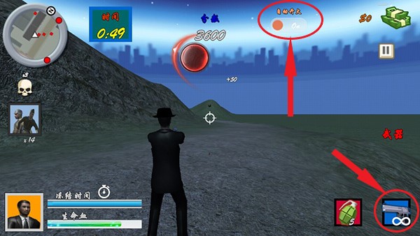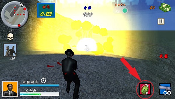 玩家点击右下角的手雷图标即可扔出手雷弹,可以直接炸死一群敌人。