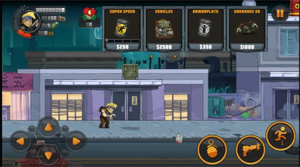 3、进入游戏关卡,通过移动角色,跳跃和攻击,使用不同的枪和手榴弹可以快速的消灭敌人。