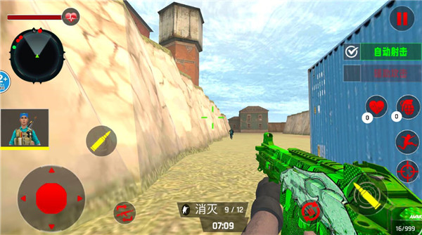 6、进入游戏,根据小地图找到敌人瞄准射击,消灭所有的敌人即算通关