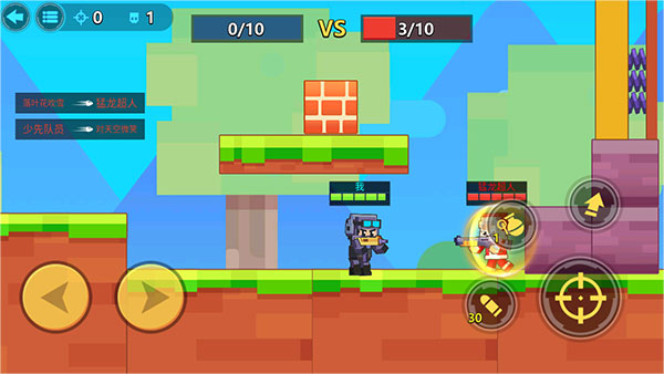 像素枪战官方正版是一款非常有趣的像素射击类游戏,游戏整体采用了像素方块设计风格,3D写实的画风带给玩家更好的游戏体验。游戏中拥有竞技模式和娱乐模式两种模式,激烈的战场竞技,休闲娱乐的多种趣味玩法,让你在玩法上有更多的选择。在这里不仅仅只有前瞻游戏的射击快感,还有像素风的趣味性相结合,能够使得游戏变得趣味性十足。玩家需要控制自己的角色左右移动,通过武器进行射击敌人,也可以使用炸弹等进行轰炸,利用各种不同的环境在游戏中躲避其他玩家的追踪,在游戏中淘汰更多的玩家。当然在射击的过程中也要十分的小心躲避敌人射出的子弹,这很锻炼你的射击技巧。