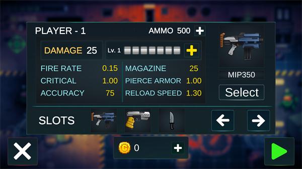 3、单人模式的玩法很简单,选择角色与武器后点击右下角的右键即可进入游戏。