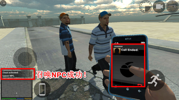 5、将号码打出去之后,稍等一会儿,如果左下角出现提示,那么作弊码就输入成功了!抬头再看,人已经被你召唤过来了。