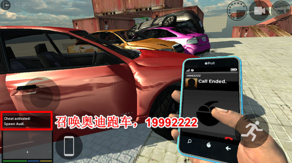 6、接下来试试刷车吧,这一刷可停不下来啊!召唤车子也是用手机菜单拨号输入作弊码实现的,刷车需要输入19992222;