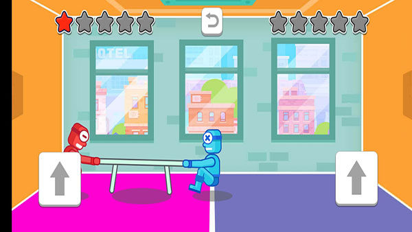双人口袋大作战最新版是一个简单有趣的对抗游戏。是的,你别笑,尽管它看起来很滑稽,但这真的是对抗游戏.....游戏里有一个蓝色小人和一个红色小人,这种组合是经典而传统的对抗角色配对,所以接下来要做什么你懂得。你需要做的事情就是控制其中一个小人,然后将对方拉过白线。谁被拉过白线,谁就将失败,这很简单。
