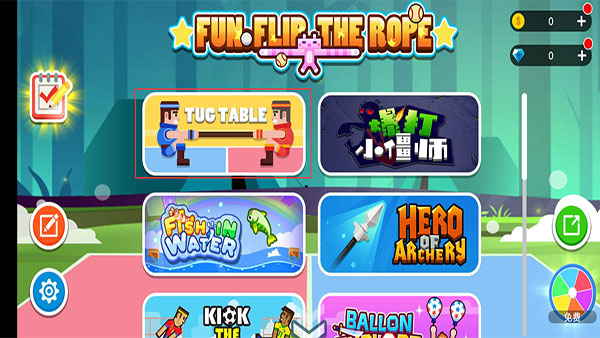 1、在游戏首页,可以看到非常多的小游戏选择,先点击第一个经典的拔河;