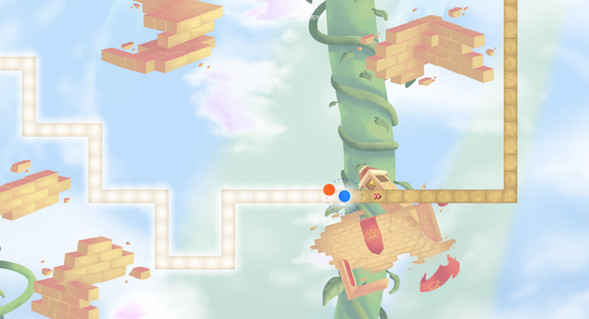 跟随着每一个节拍按键,让双星沿着一条线向前。